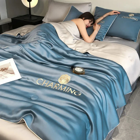 SPECIFICATIONSAge: adultsBrand Name: NoEnName_NullCN: ZhejiangFabric Count: 40Filling: POLYESTERHigh-concerned chemical: NoneMaterial: 100% PolyesterOrigin: Mainland ChinaSeason: SummerThread Count: 100 TCUse: Home,HOTELWash: Mechanical Wash Quantity: 1pc summer quilt(No pillowcase)