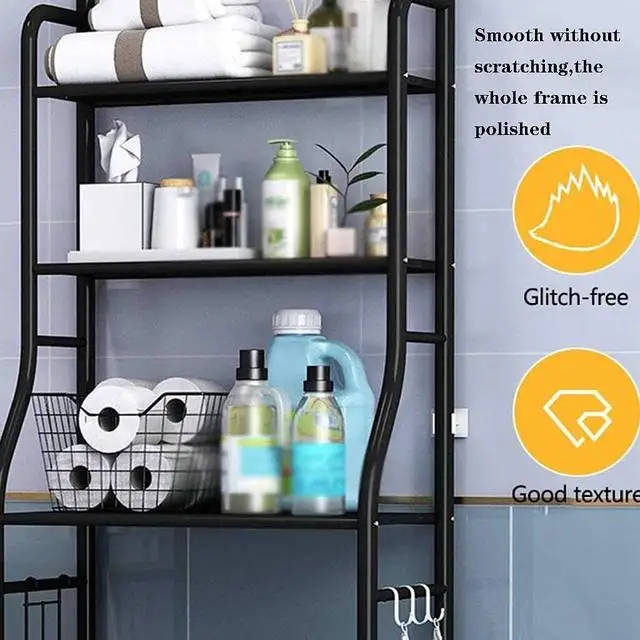3 tier bathroom organizer over the toilet 160x47x25cm, waterproof storage rack multipurpose organizer rack save space with 3 height adjustable leg shelves (carries 4 hooks included)