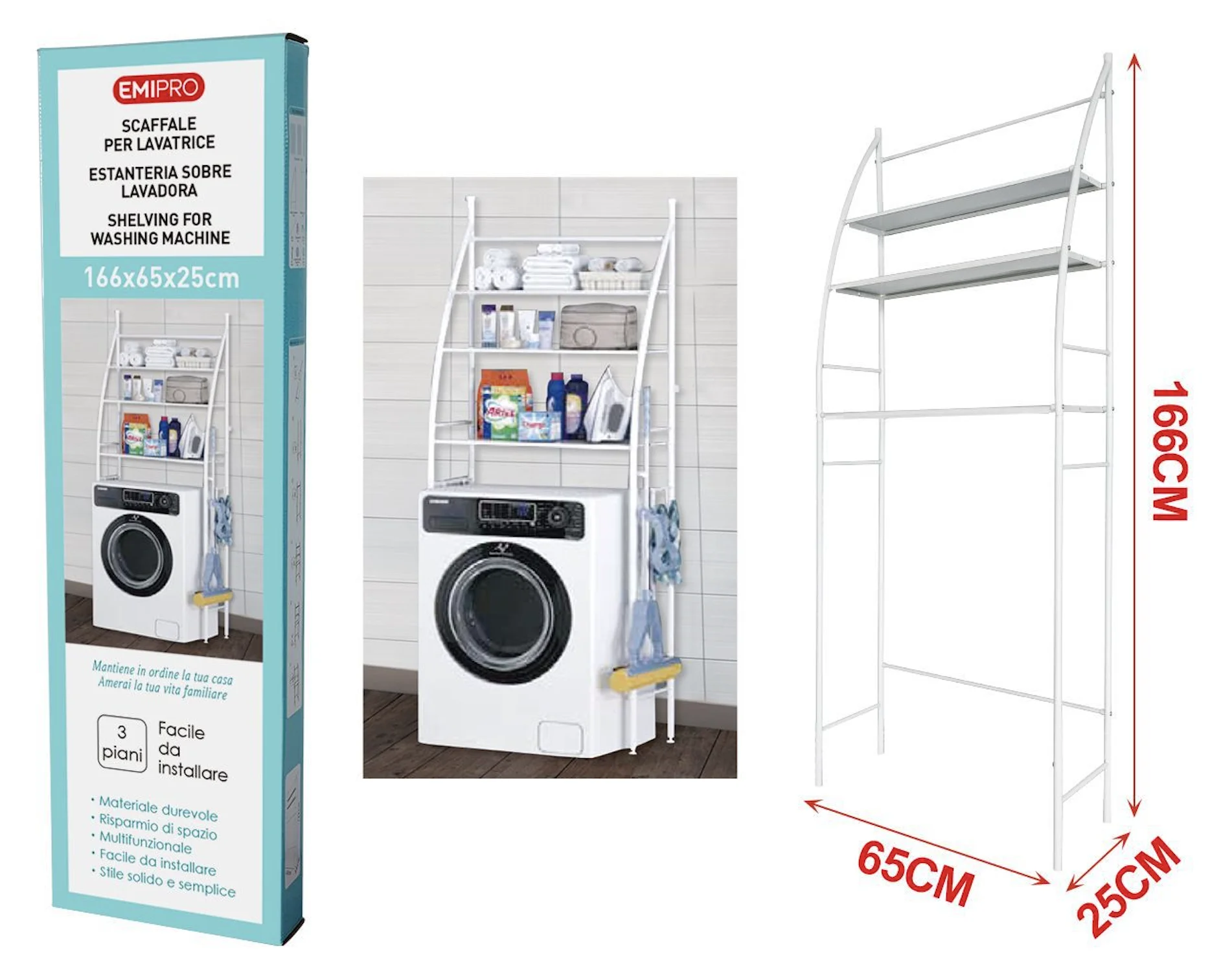 Shelf over washing machine and for bathroom save space organizer 166x65x25cm shelf on washing machine| Waterproof storage rack| Multipurpose organizer rack| Save space with 3 shelves| Height adjustable legs